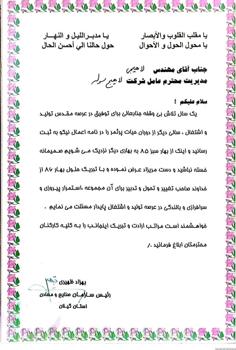 خداوند بزرگ را شاکرم که بعد از قریب به ۵۰ سال با تائیدات ایزد منان و تلاش و پشتکار دائمی و ثبات ،اراده توانسته ایم سهمی در عمران و توسعه کشور بویژه خطه شمال کشور داشته باشیم. بدون شک جایگاه کنونی ما مرهون زحمات کسانی سـت کـه از ابتدای راه در کنارمان بودهاند و از دانش تجربه و تخصص خود به ما بخشیده اند و به ما اعتماد کرده اند تا بتوانیم در این مسیر طولانی هم قدم باشيم. باور قلبی من اینست که با کار ،جمعی، تعهد، دلسوزی، تخصص و بکارگیری دانش و تکنولوژی روز دنیا میتوانیم به پروژه های بزرگتر و پیمودن راههای پرفراز و نشیب تر بیندیشیم. امیدوارم در سایه توجهات خداوند و با تکیه بر همراهی خانواده بزرگ لاهیج در تعالی و رشد میهنمان قدم برداریم و بتوانیم الگویی موفق در حوزه عمران و ساختمان باشیم.